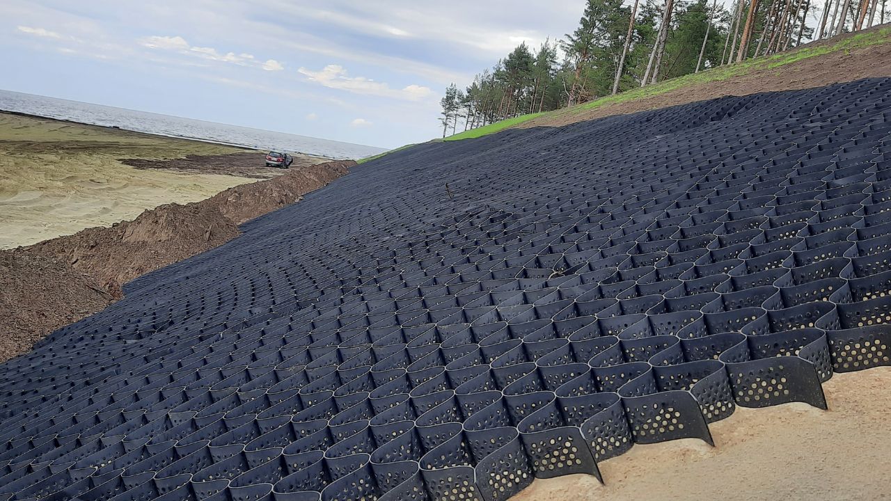 Oferim o gamă largă de soluții, de la consolidări ale solului la depozite de deșeuri și multe altele. Oferim o gamă diversificată de produse și soluții care presupun utilizarea de materiale geosintetice, geotextile, geogrile, geomembrane, gabioane, ziduri de sprijin și multe altele.